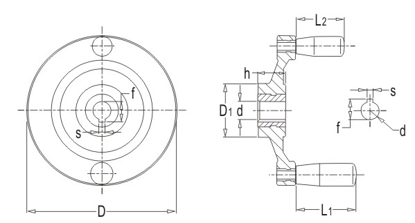 JS.101013 雙柄手輪 顏色:亮光黑 材質(zhì):酚醛樹脂(膠木) 用途:適用于小型機(jī)械裝備及精密儀器的調(diào)節(jié) 特性:光澤感強(qiáng),外形美觀,兩個(gè)手柄具備了微動(dòng)調(diào)整的優(yōu)勢。耐高溫、溶劑、機(jī)油及其他化學(xué)試劑。鋼制鐵芯表面處理防銹能力強(qiáng)