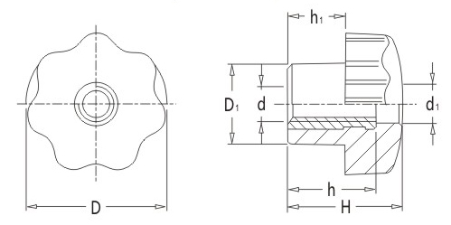 JS.102010 通孔星形把手 顏色:亮光黑 材質(zhì):酚醛樹脂(膠木) 用途:適用于各類機械裝備、五金工具、舞臺燈光設(shè)備等行業(yè) 特性:光澤感強、外形美觀、機械強度高、堅固耐用、標準化使用、安裝簡便。