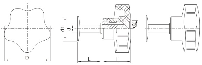 JS.102018 壓片五星把手 顏色:亮光黑 材質:酚醛樹脂(膠木) 用途:適用于玻璃機械及其他機械設備、五金工具等行業 特性:光澤感強、外形美觀、機械強度高、堅固耐用、標準化使用、安裝簡便。