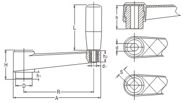 JS.103013 搖手柄 顏色:黑色 材質:增強尼龍 用途:適用于各類機械設備的調節 特性:光澤感強、外形美觀、機械強度高、堅固耐用、標準化使用、安裝簡便